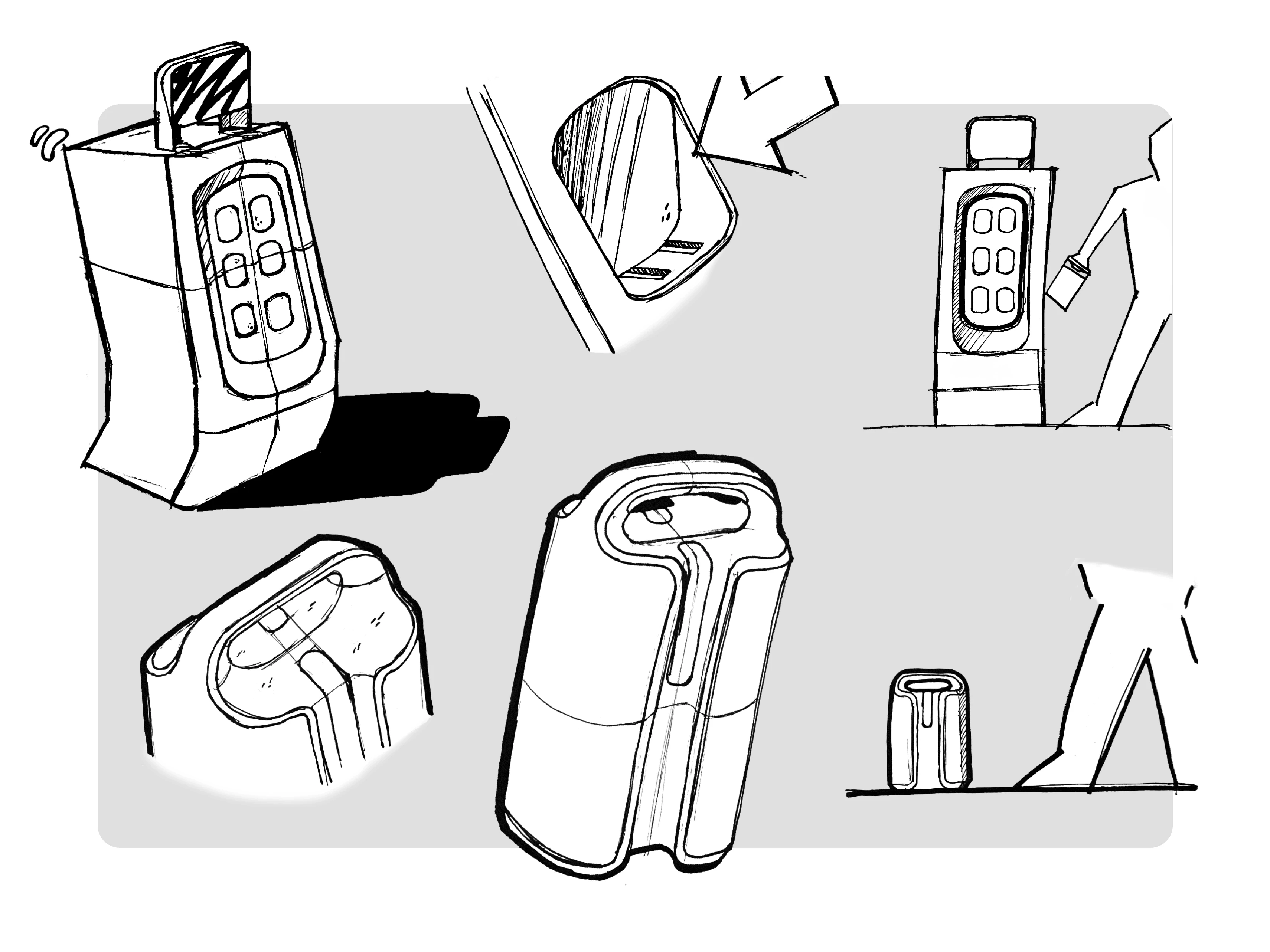 The design was refined through multiple sketching and 3D iteration phases, focusing on ergonomics, accessibility, internal layout, and fabrication criteria.
